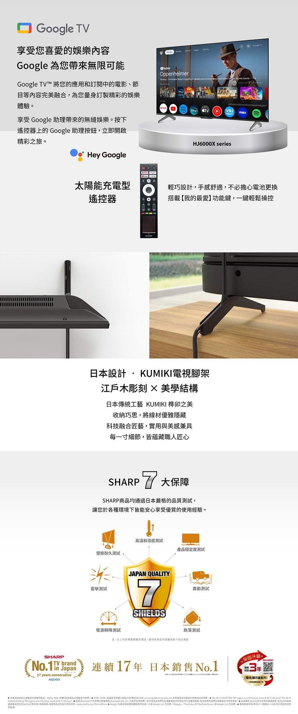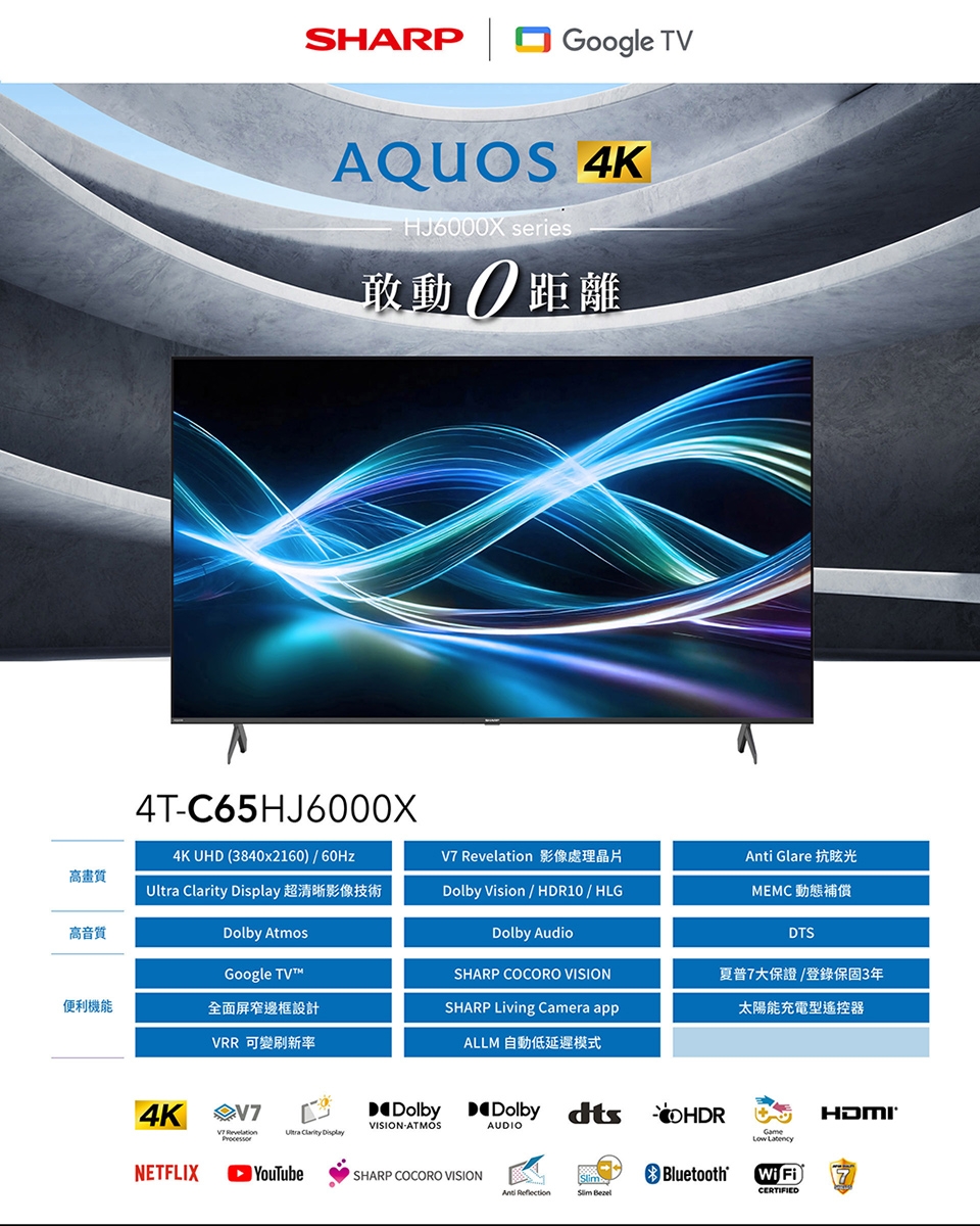 SHARP夏普 65吋 AQUOS 4K Google TV聯網顯示器(4T-C65HJ6000X)