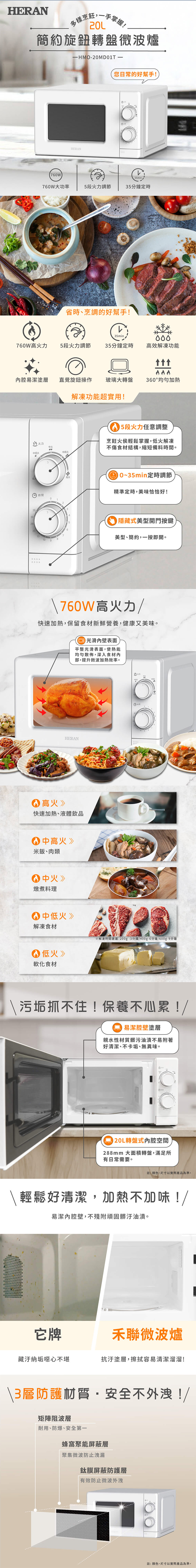 HERAN禾聯 20L 轉盤式微波爐 HMO-20MD01T 全新公司貨
