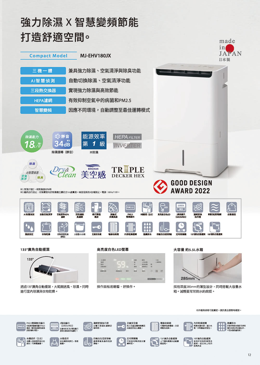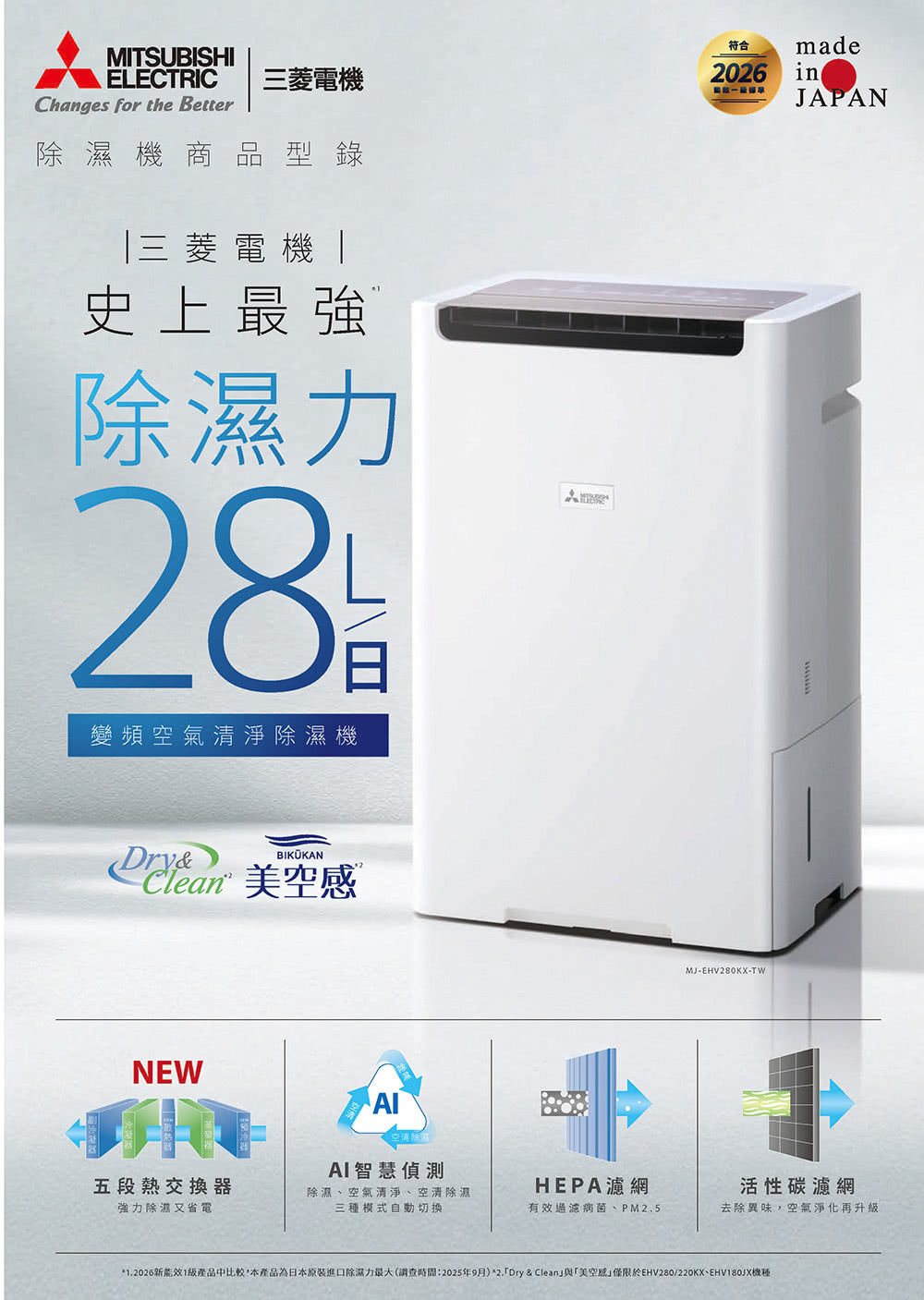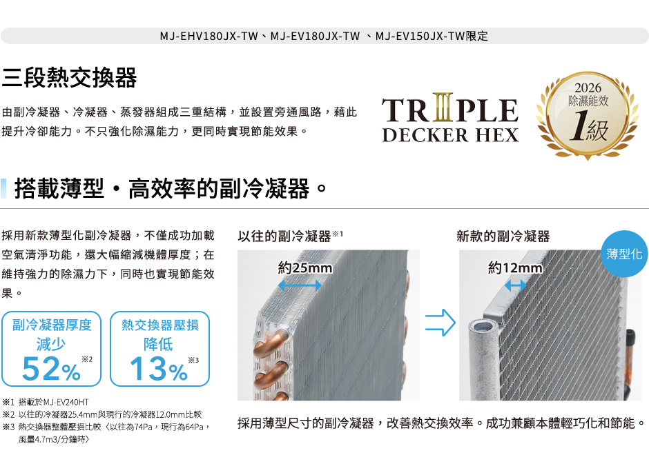 ▪ 搭載智慧變頻 及獨家三段熱交換器,兼具強力除濕與節能