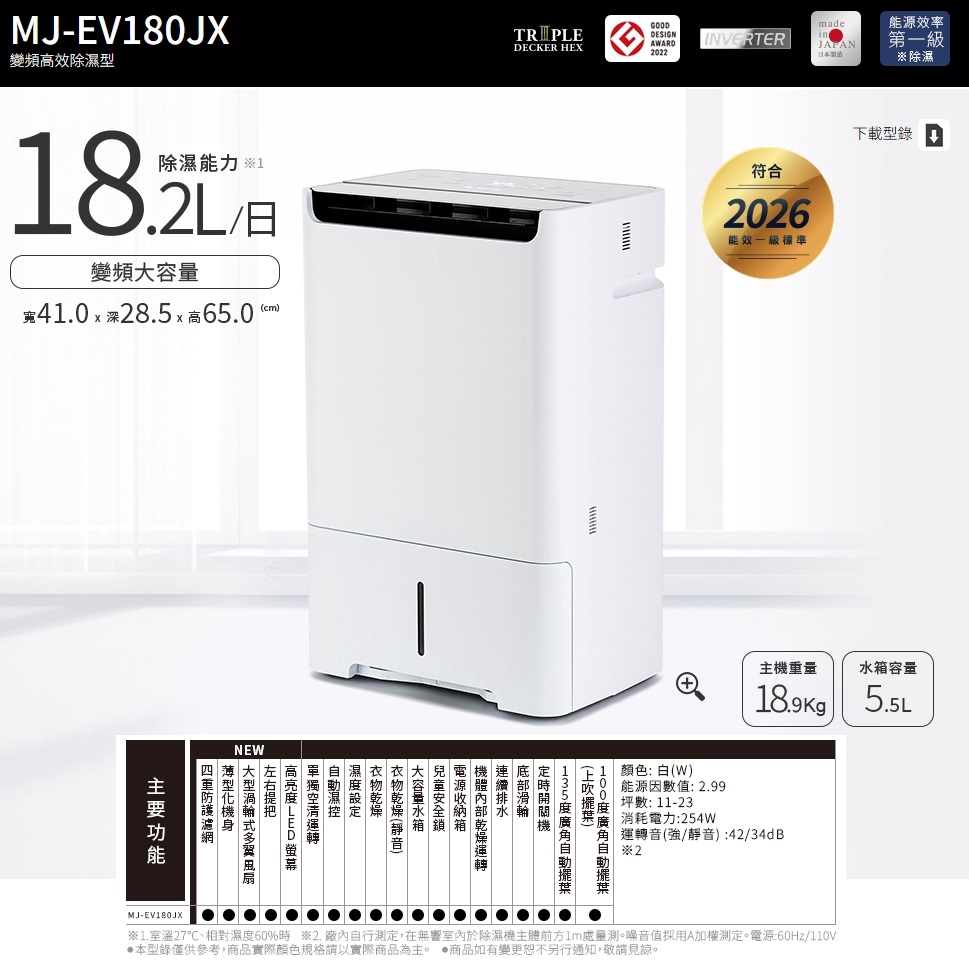 原廠型號:MJ-EV180JX-TW