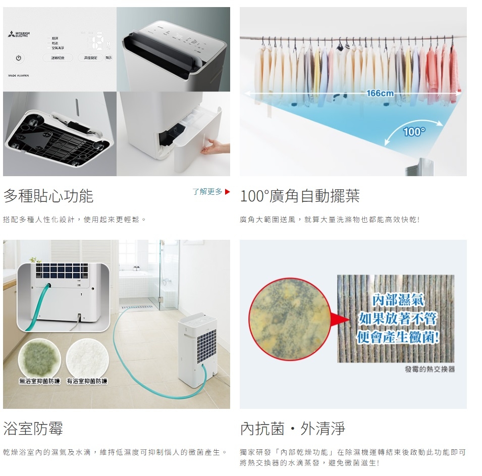 - 夜間乾衣模式,浴室抑制黴菌模式