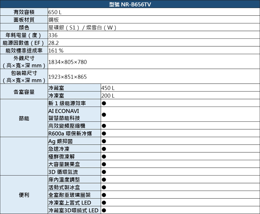 | 型號 | NR-B656TV-W |