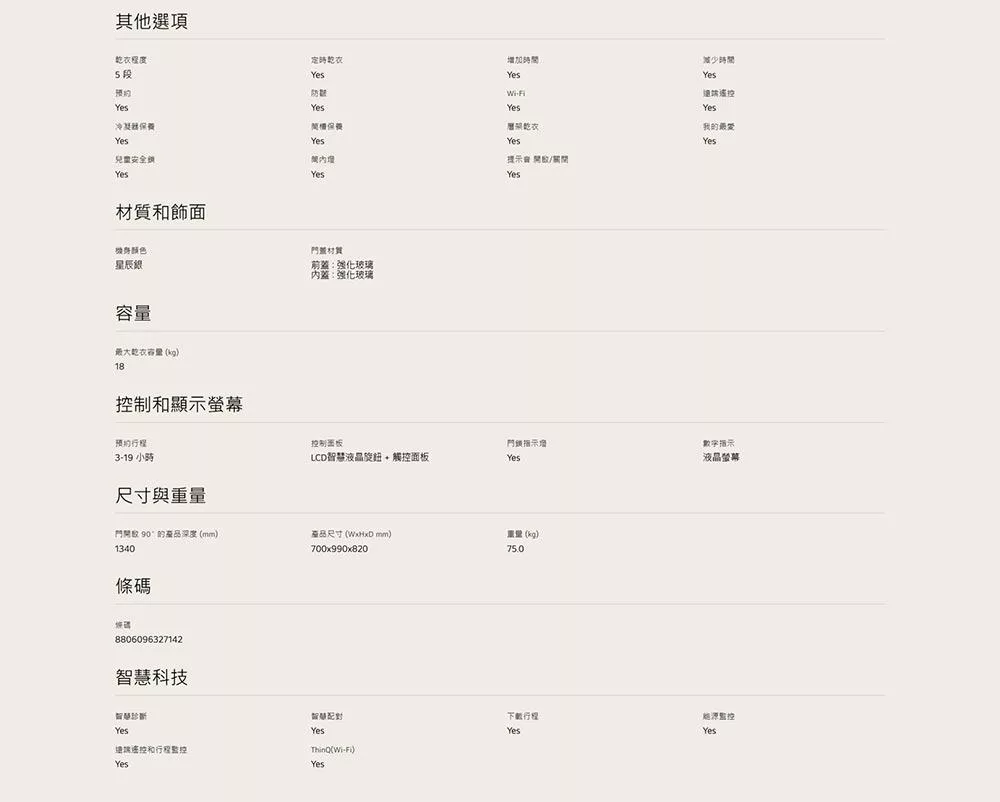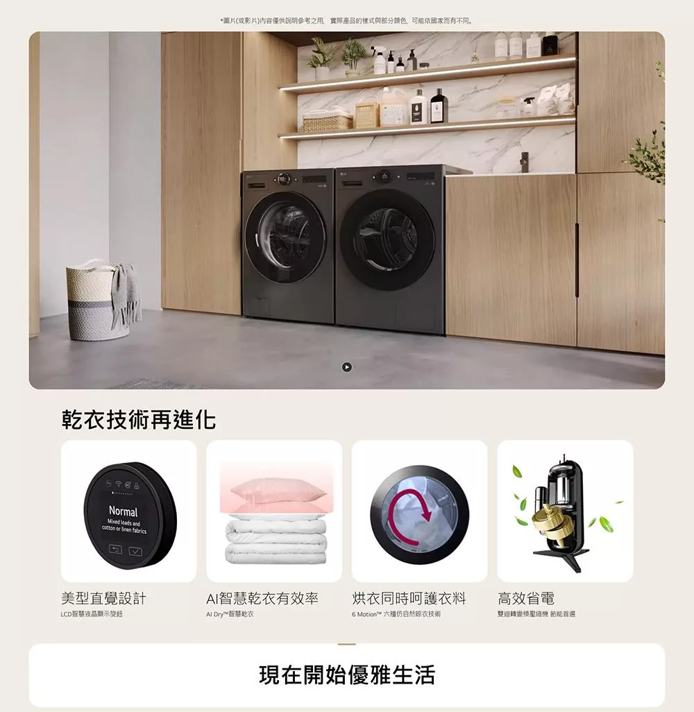 LG樂金 WR-18DS 18公斤 AI Dryer™ 免曬衣乾衣機 全新公司貨 含定位安裝