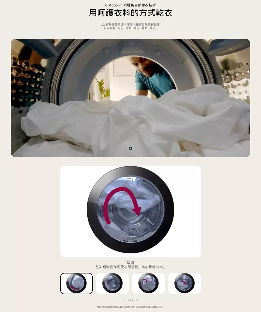 ◆ 更護衣: 6 Motion™ 六種仿自然晾衣動作